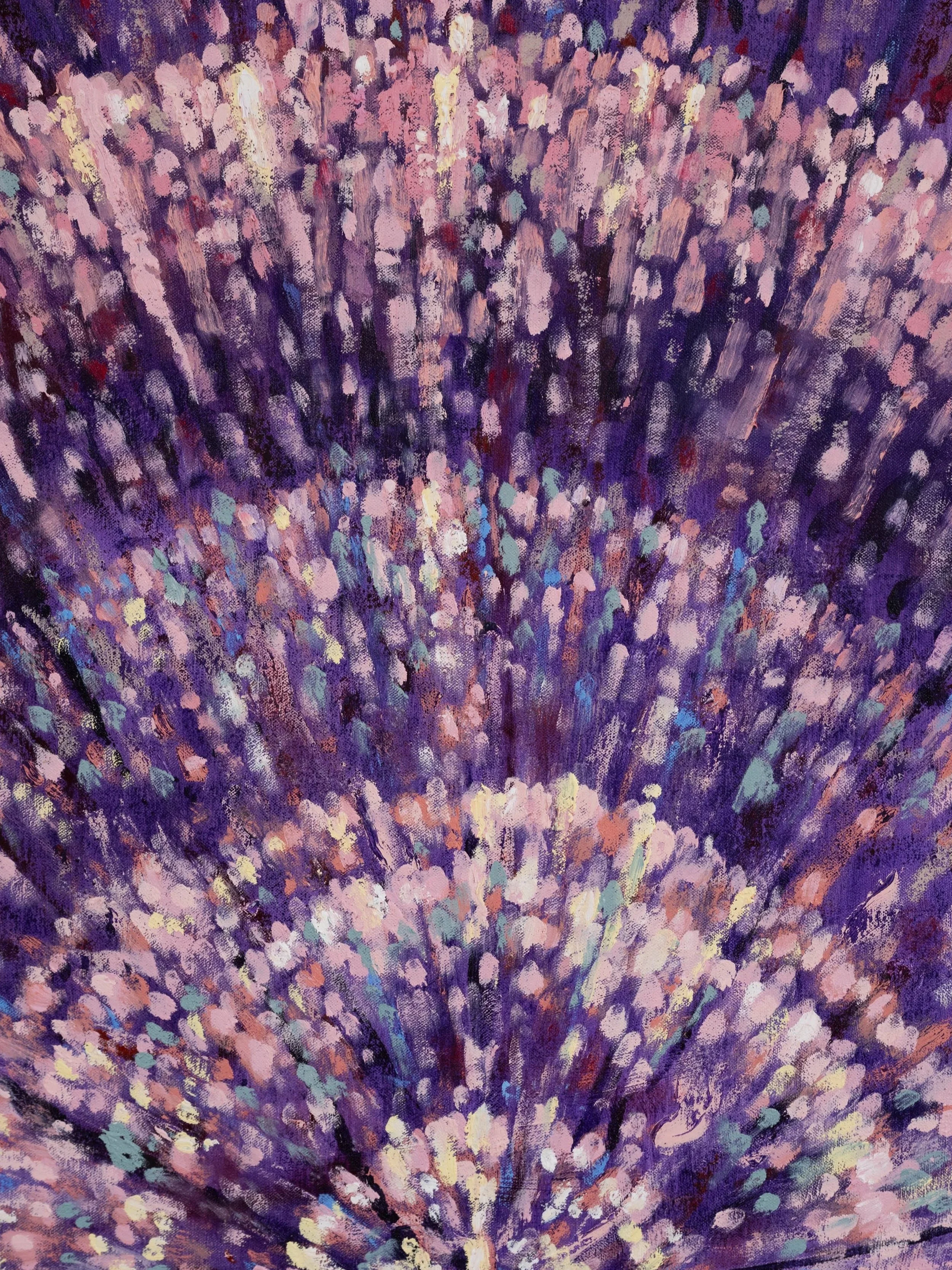 Sea and fog, ember and bloom collide on these canvases, forging a tense unity from opposing forces. Fractures bind into one restless whole.