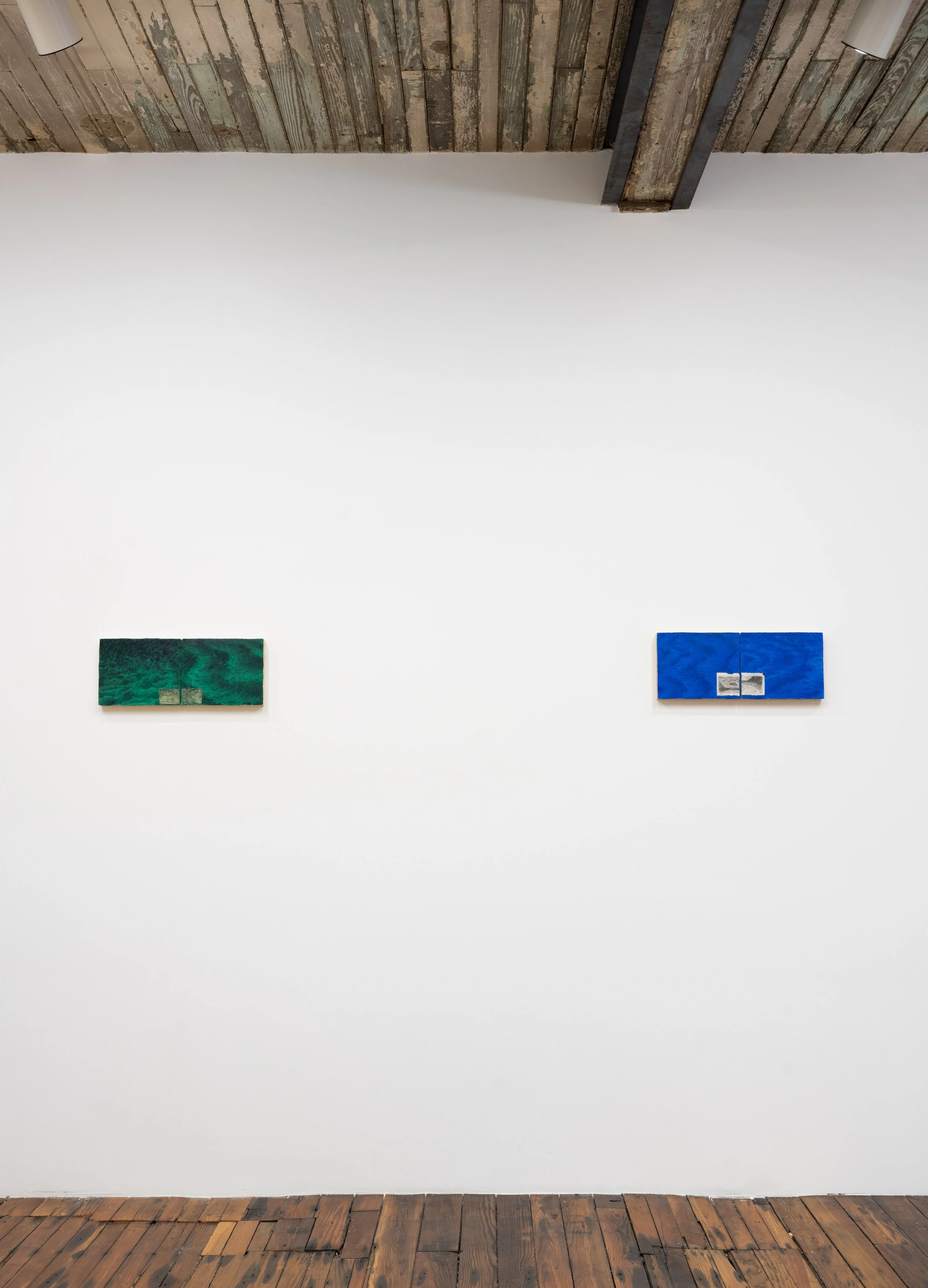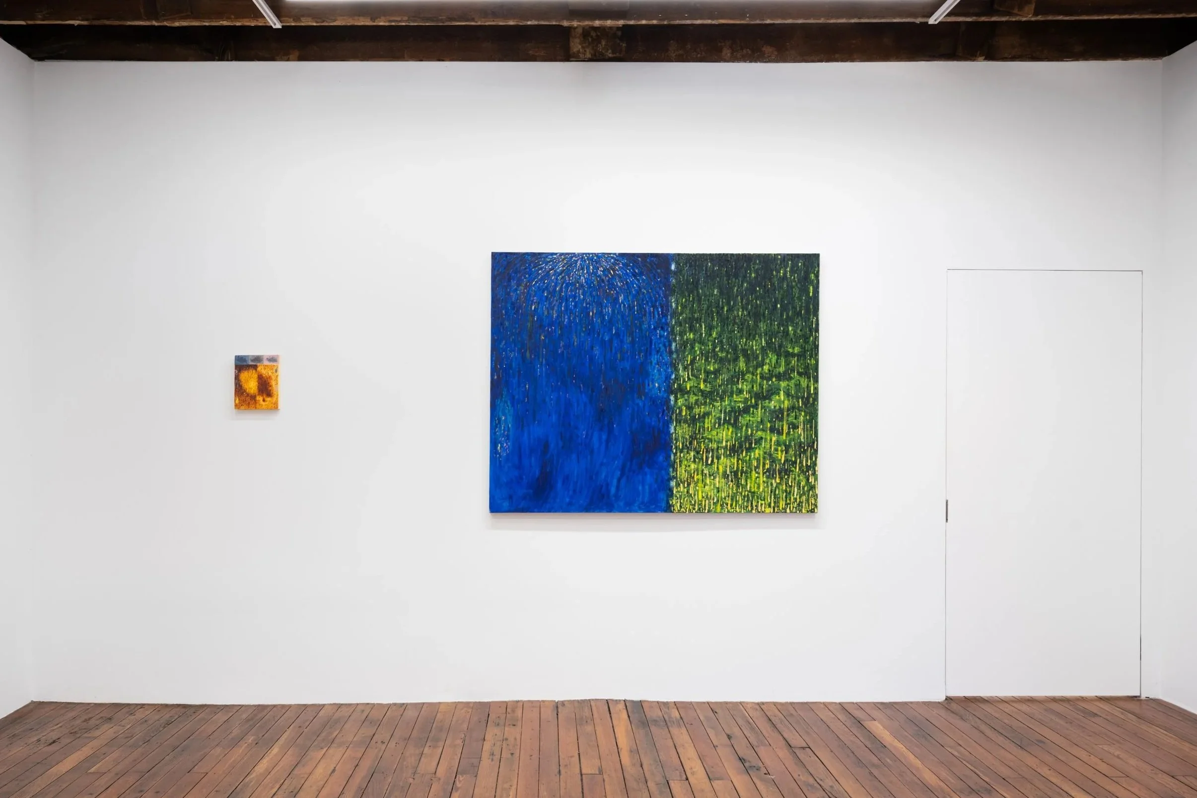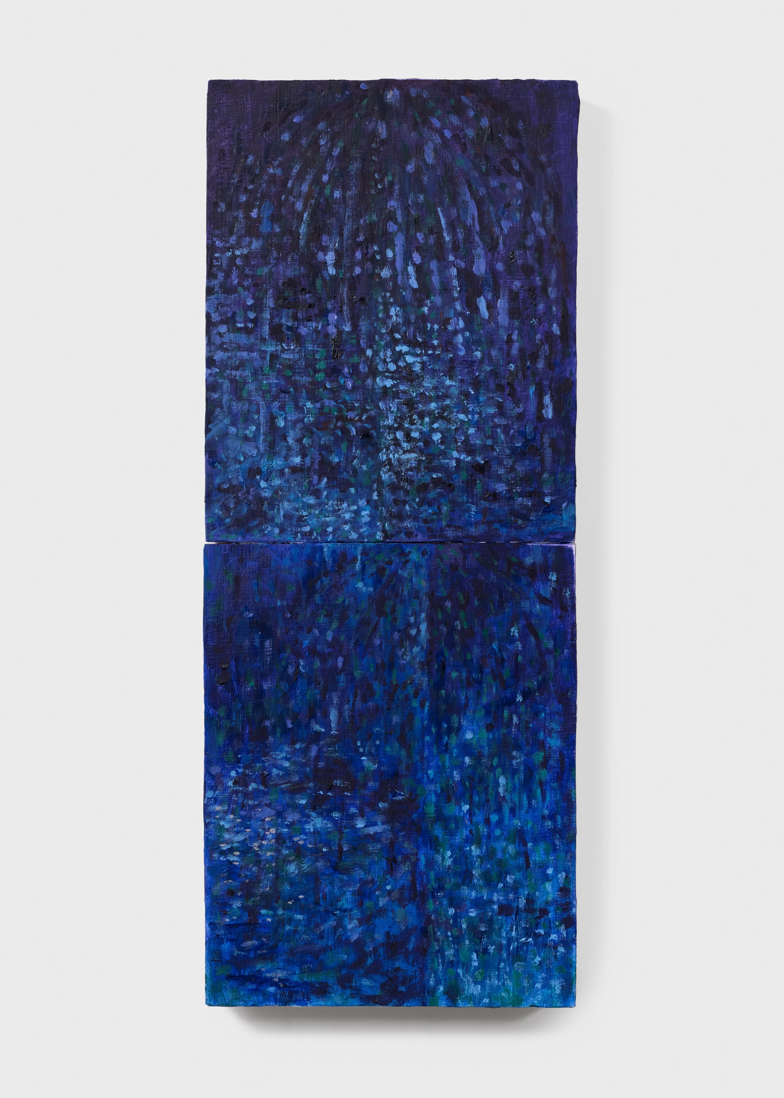 In Middle Distance, Thiang Uk’s monoptychs evolve into diptychs, becoming fused into single canvases. The split persists as a liminal space animated by oil and rubbed pigment.