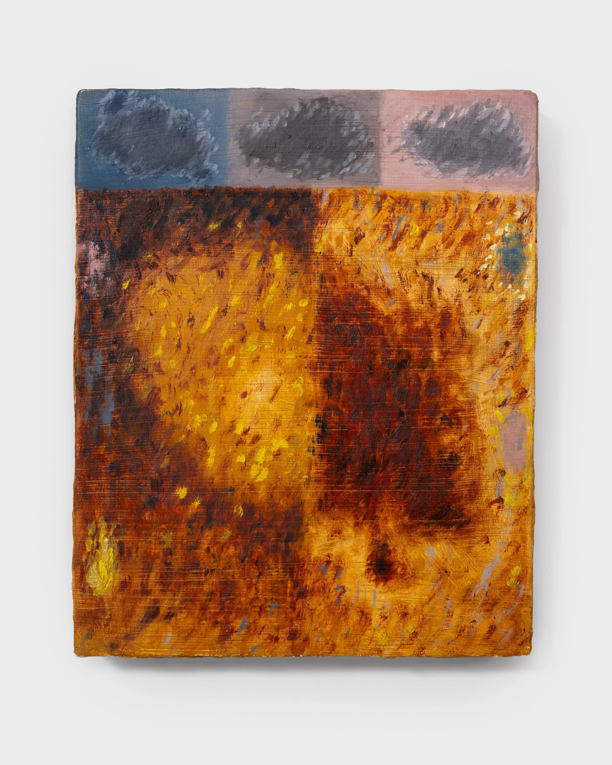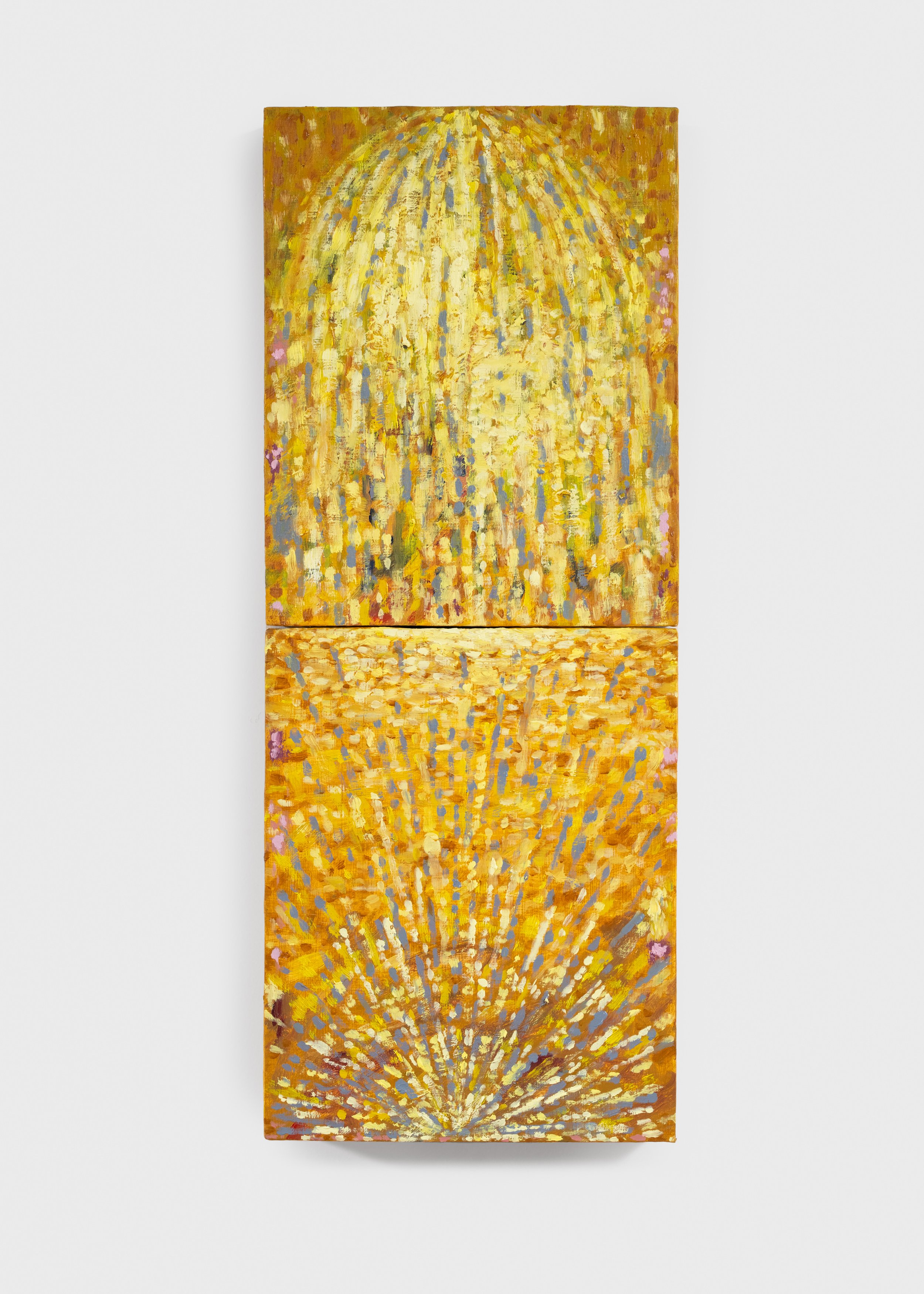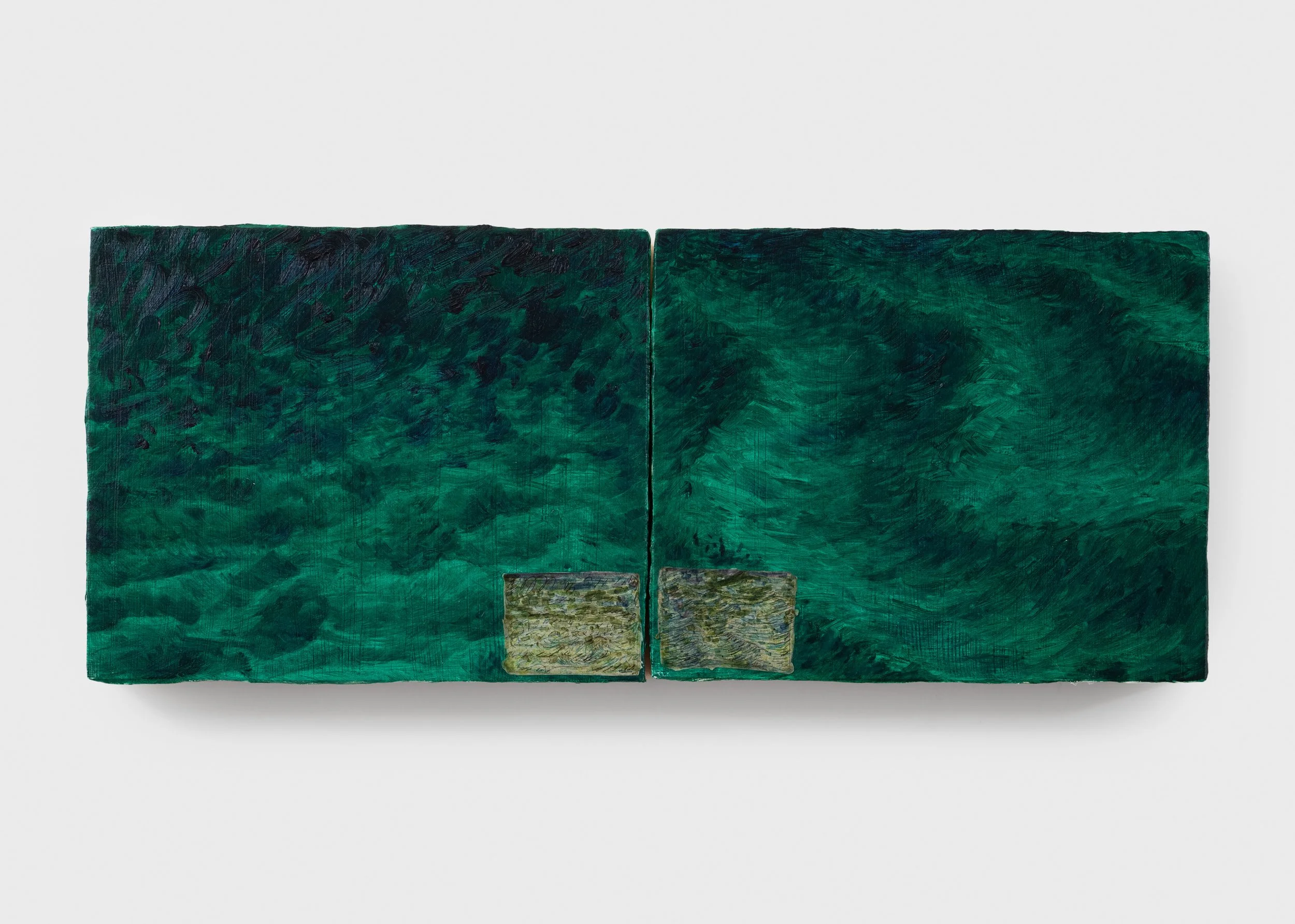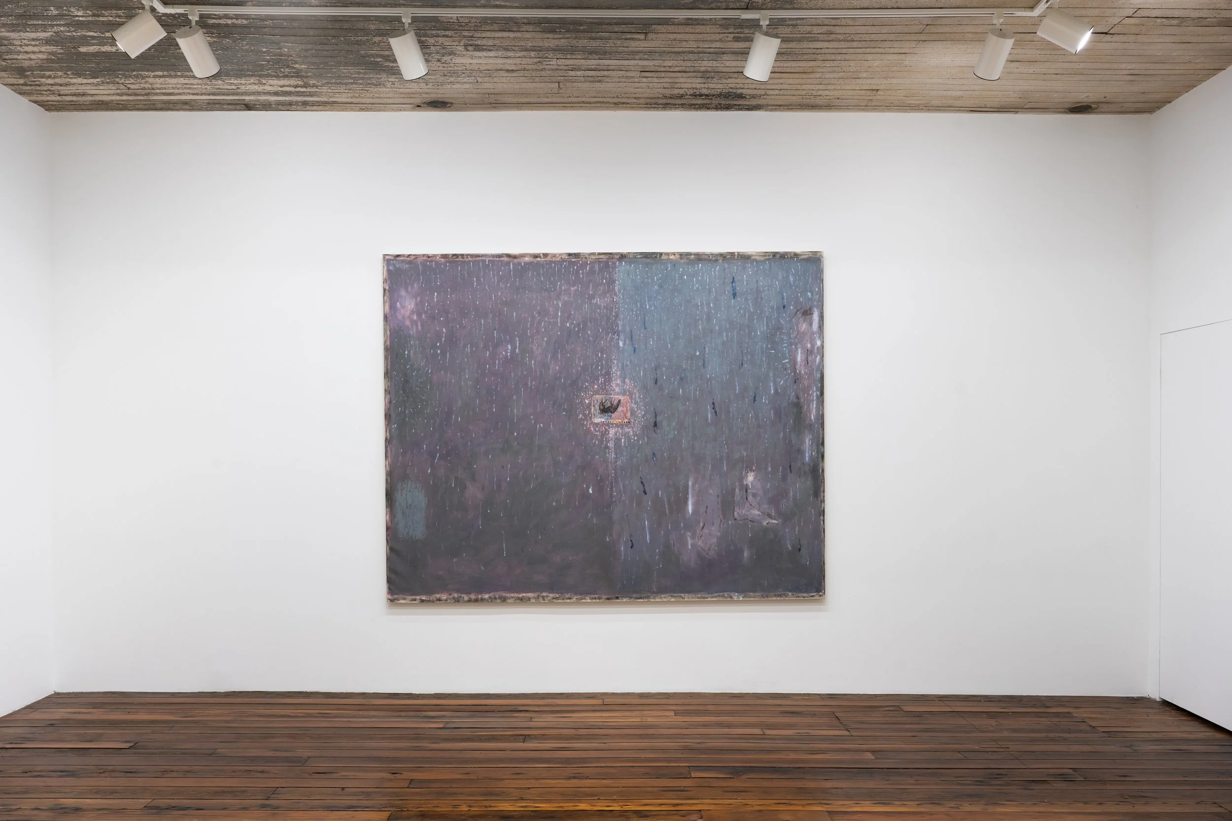 In Middle Distance, Thiang Uk’s monoptychs evolve into diptychs, becoming fused into single canvases. The split persists as a liminal space animated by oil and rubbed pigment.